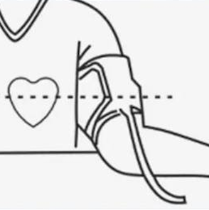 Крок 3Центр нарукавної пов'язки знаходиться на одній висоті з серцем. Зверніть увагу, щоб повітряна трубка на нарукавній пов’язці не була скручена і не складена.